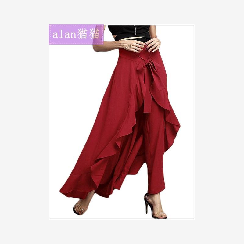 ruffled skirt women irregular woman裙褲 temperament trousers