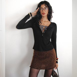 肌理感針織半身裙女初秋彈力修身 ITSNIKAR 包臀裙復(fù)古顯瘦短裙子
