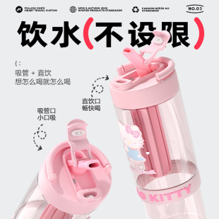 hellokitty可愛水杯吸管大容量高顏值女生夏天水壺便攜tritan杯子