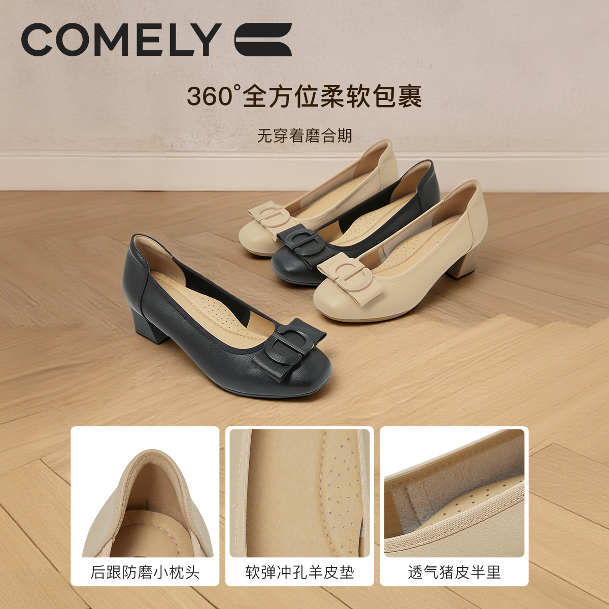 為您提供商品商場同款 康莉粗跟單鞋 女2025秋新款 舒軟真皮一腳蹬中跟女鞋 55368的詳細介紹,