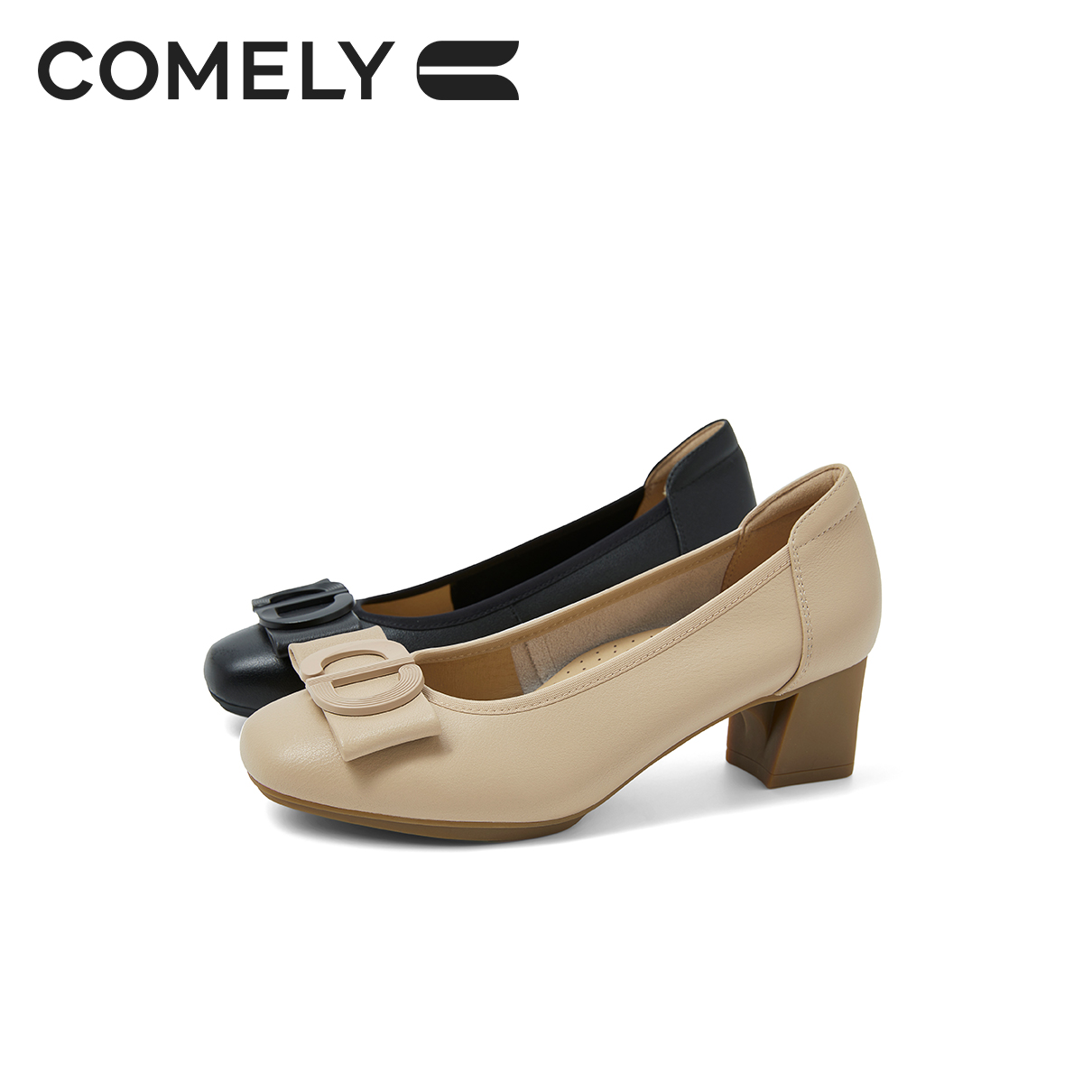 商場同款 康莉粗跟單鞋 女2025秋新款 舒軟真皮一腳蹬中跟女鞋 55368