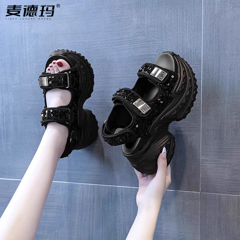 厚底松糕外穿坡跟時裝 夏季 2025新款 女士女鞋 運動內增高跟羅馬涼鞋抖音小紅書同款網紅熱銷 - 時裝涼鞋 - 淘寶網