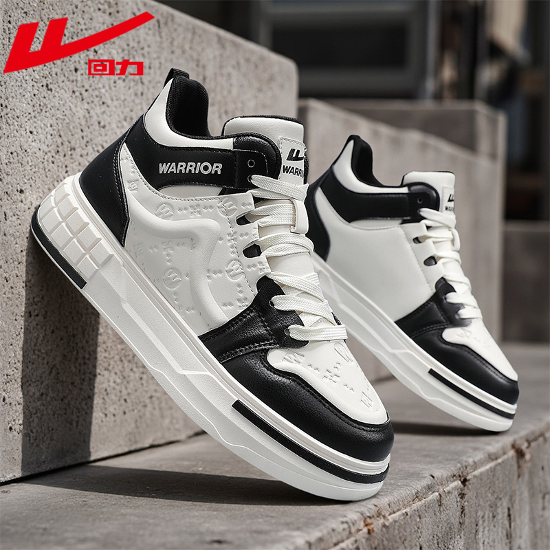 秋冬高幫休閑鞋 皮面鞋 男鞋 子學(xué)生運(yùn)動(dòng)鞋 新款 電池熊貓鴻星爾克板鞋