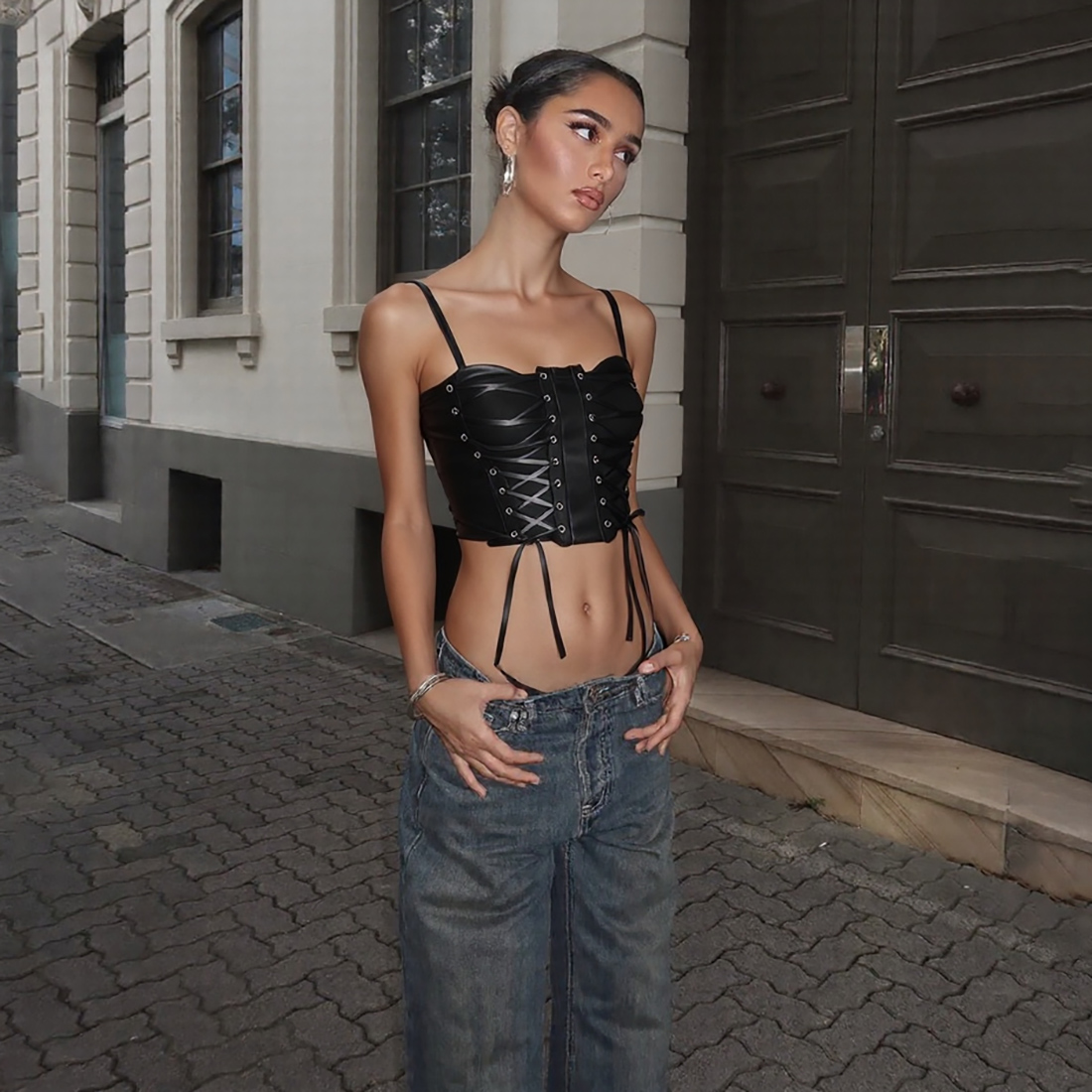 Sisjuly 搖滾前奏綁帶設(shè)計皮革修身 歐美街頭sexy 短款 吊帶背心女抖音小紅書同款網(wǎng)紅熱銷 - 背心吊帶 - 淘寶網(wǎng)