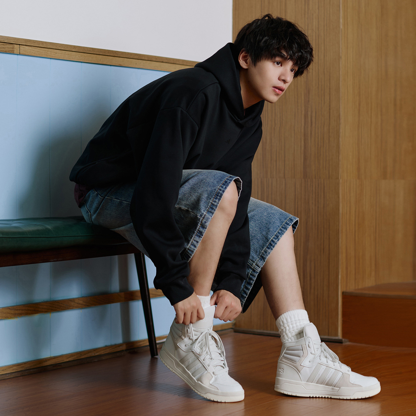 ENTRAP中高幫運(yùn)動(dòng)板鞋 adidas阿迪達(dá)斯 男女秋季 少年感復(fù)古籃球鞋