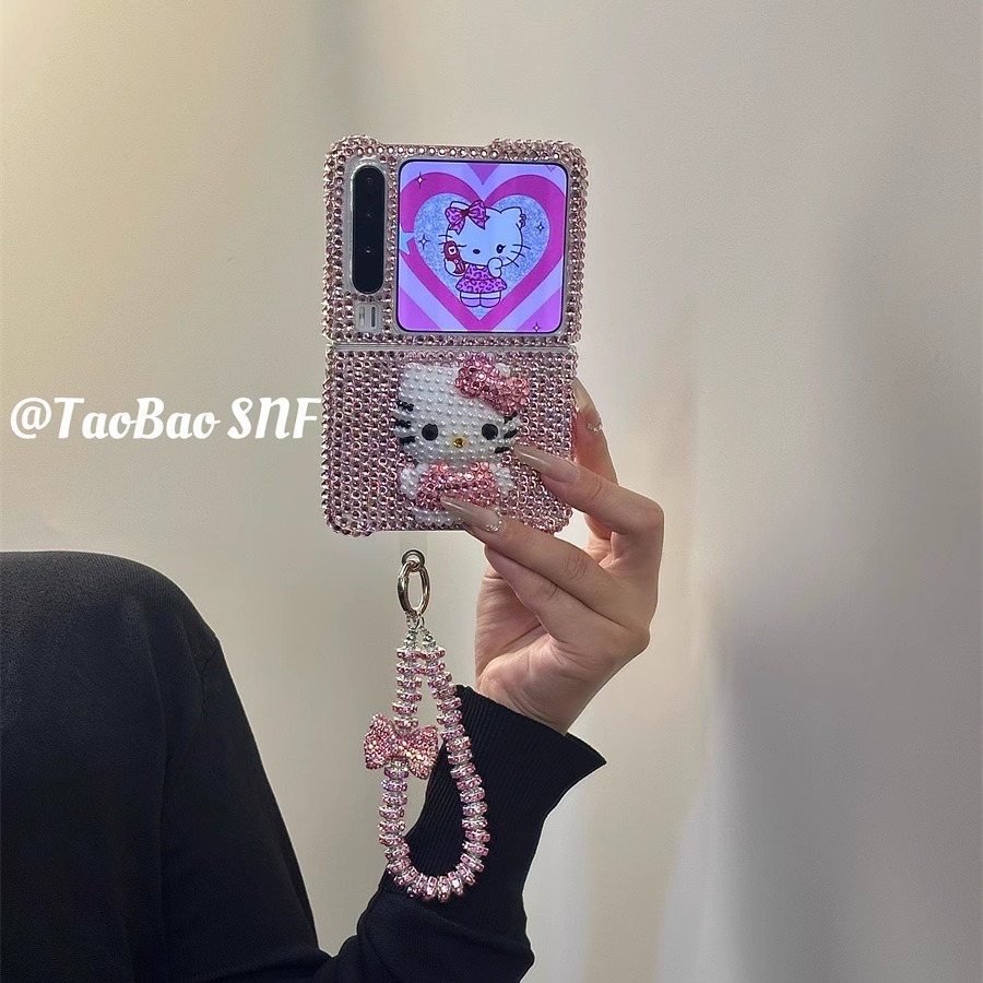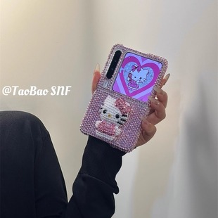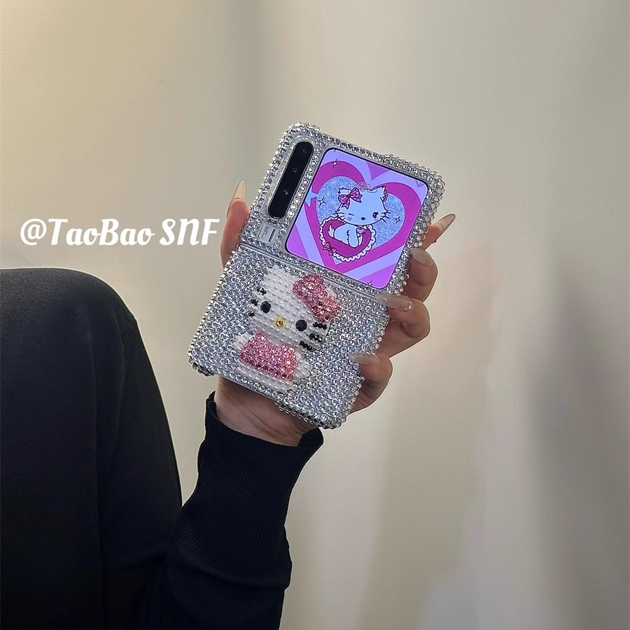 ins可愛站立滿鉆kt貓適用PuraX華為Pocket2手機殼小米MIXFlip2折疊FindN3Flip三星Zflip6 5novaFlip榮耀VFlip
