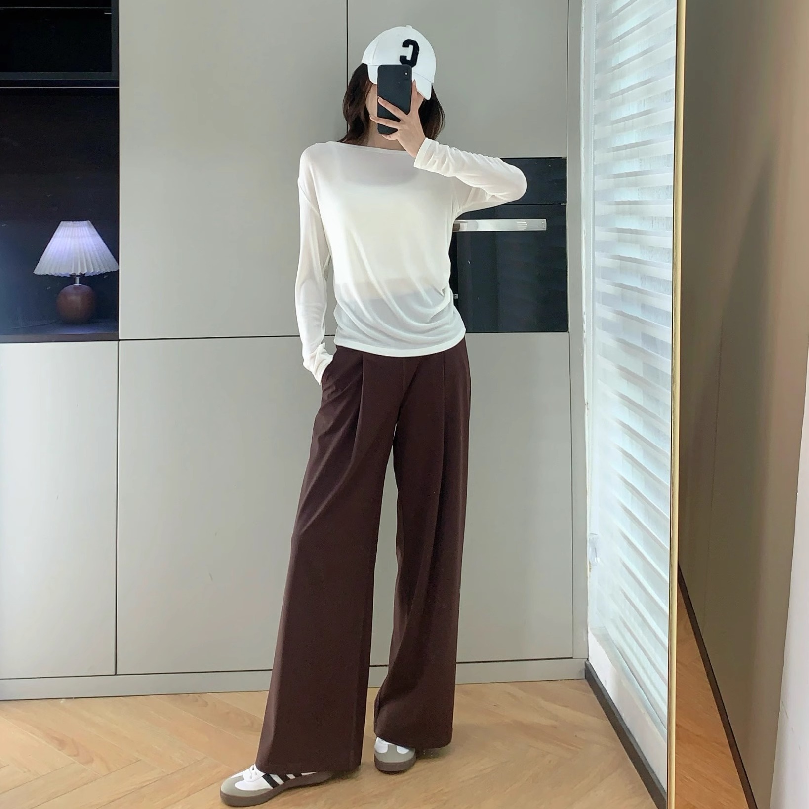 高級寬松bf慵懶垂感直筒加絨休閑闊腿褲 糯米褲 子女春秋季 2025新款