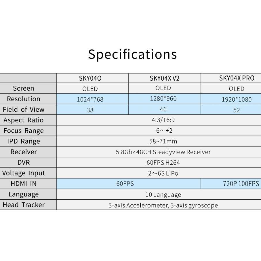 04X SKYZONE SKY04X PRO V2視頻眼鏡頭部跟蹤OLED分辨率1920X1080