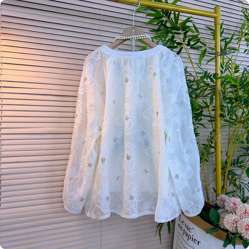 設計感方領提花刺繡女人衫 大碼 爆款 女裝 胖mm洋氣上衣 時尚 2025秋季