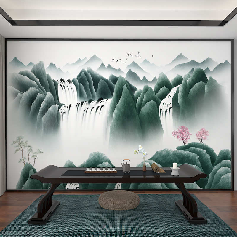 新中式 影視墻壁紙意境水墨畫電視背景墻墻紙壁畫書房茶室古典墻布抖音小紅書同款網(wǎng)紅熱銷 - 定制壁畫 - 淘寶網(wǎng)
