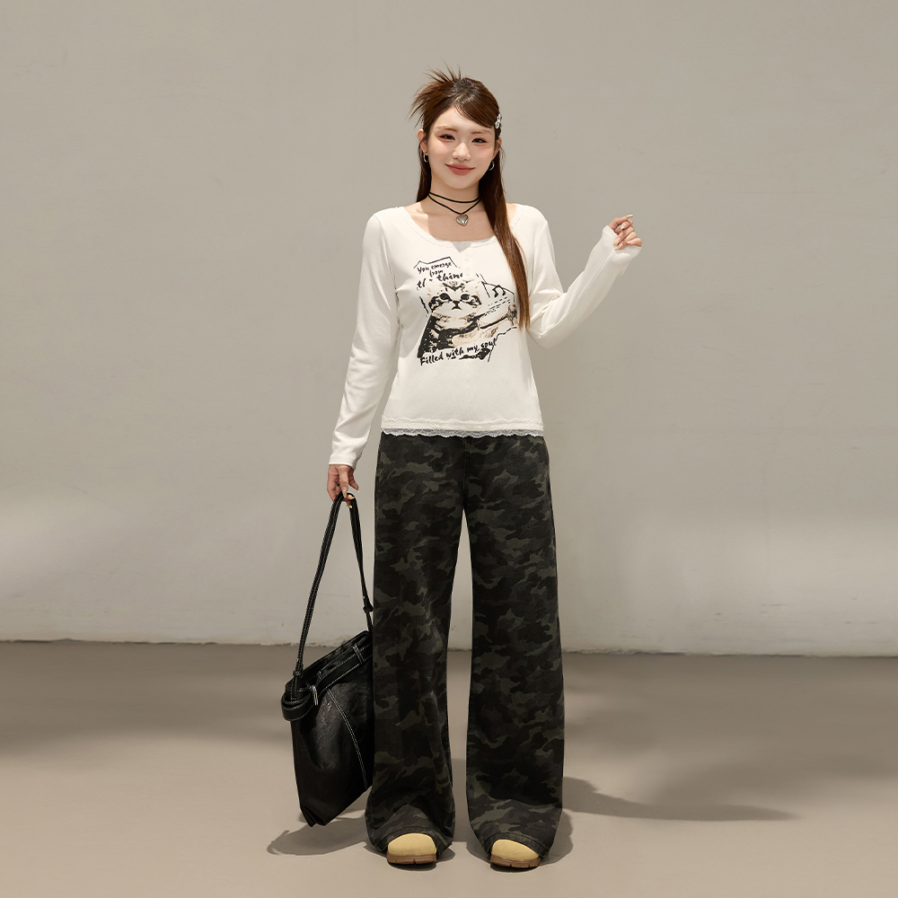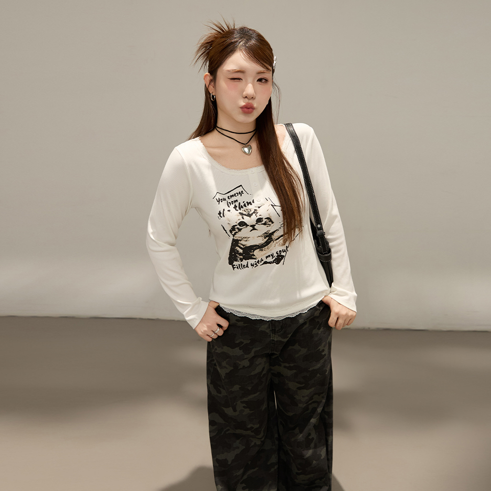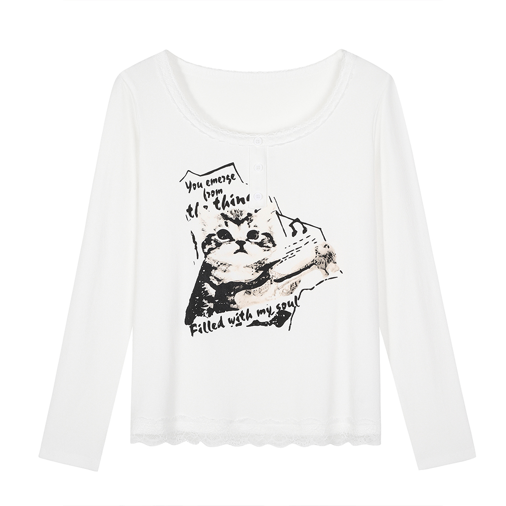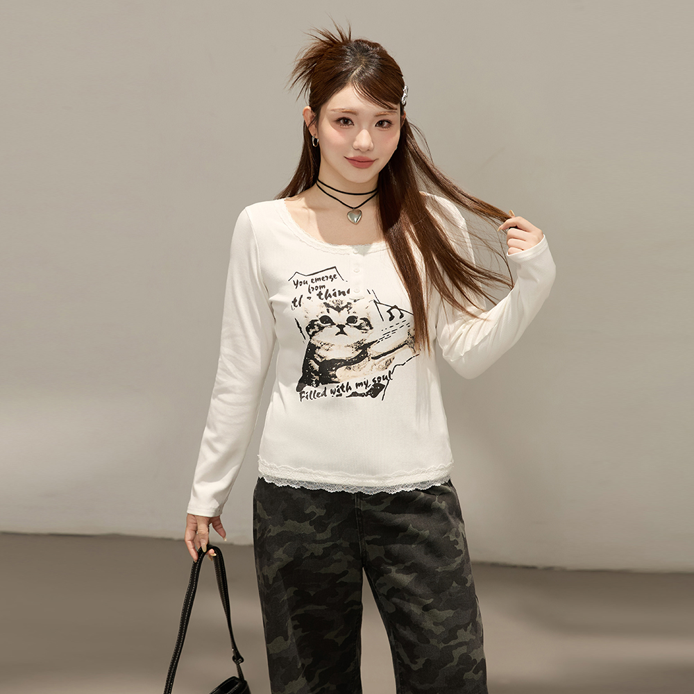 為您提供商品胖mm清新U領(lǐng)蕾絲印花長(zhǎng)袖 小波家2025秋季 寬松顯瘦T恤的詳細(xì)介紹,