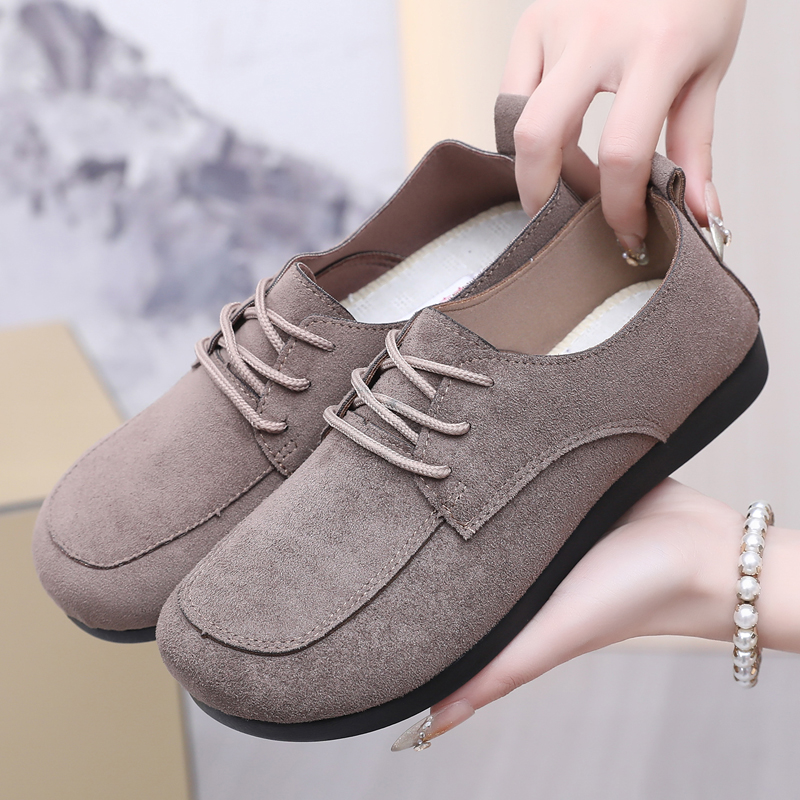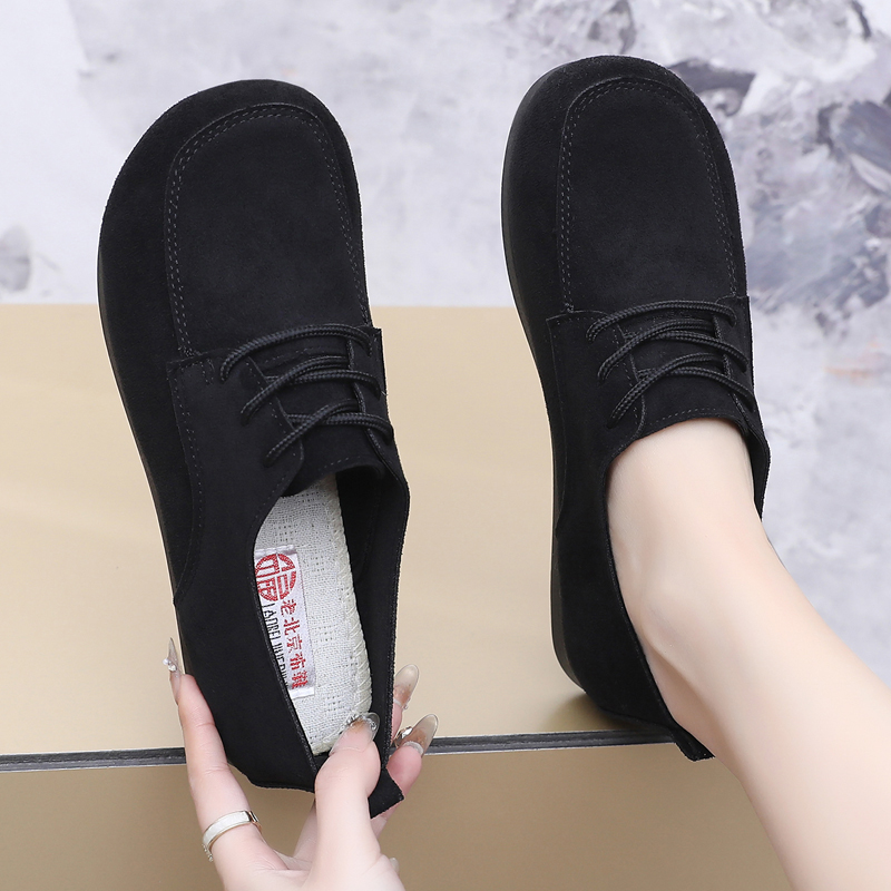 豆豆鞋 星期六真皮平底加絨淺口單鞋 女2024秋冬新款 溫柔風(fēng)勃肯鞋 子
