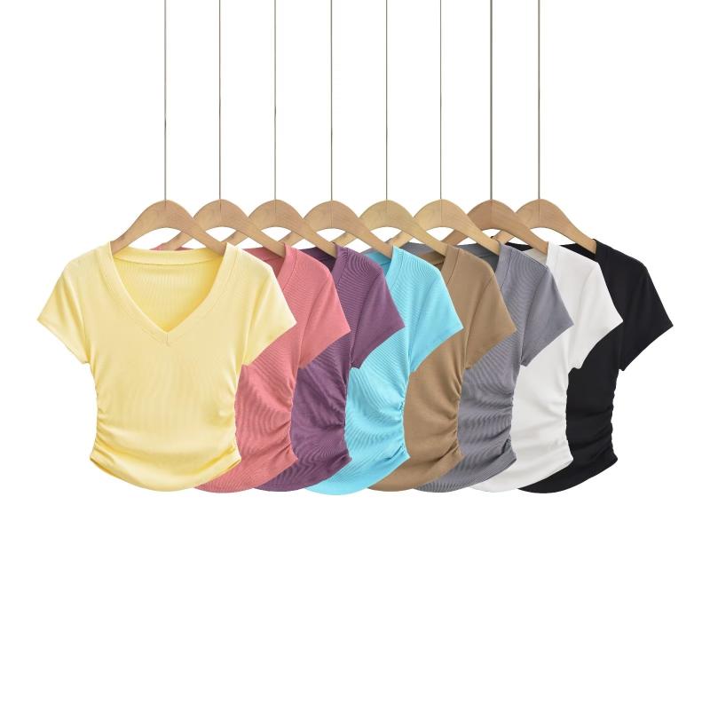 為您提供商品辣妹基礎(chǔ)T汗衫 青春少女系V領(lǐng)短袖 女t恤法式 純欲抽褶設(shè)計(jì)百搭短款的詳細(xì)介紹,