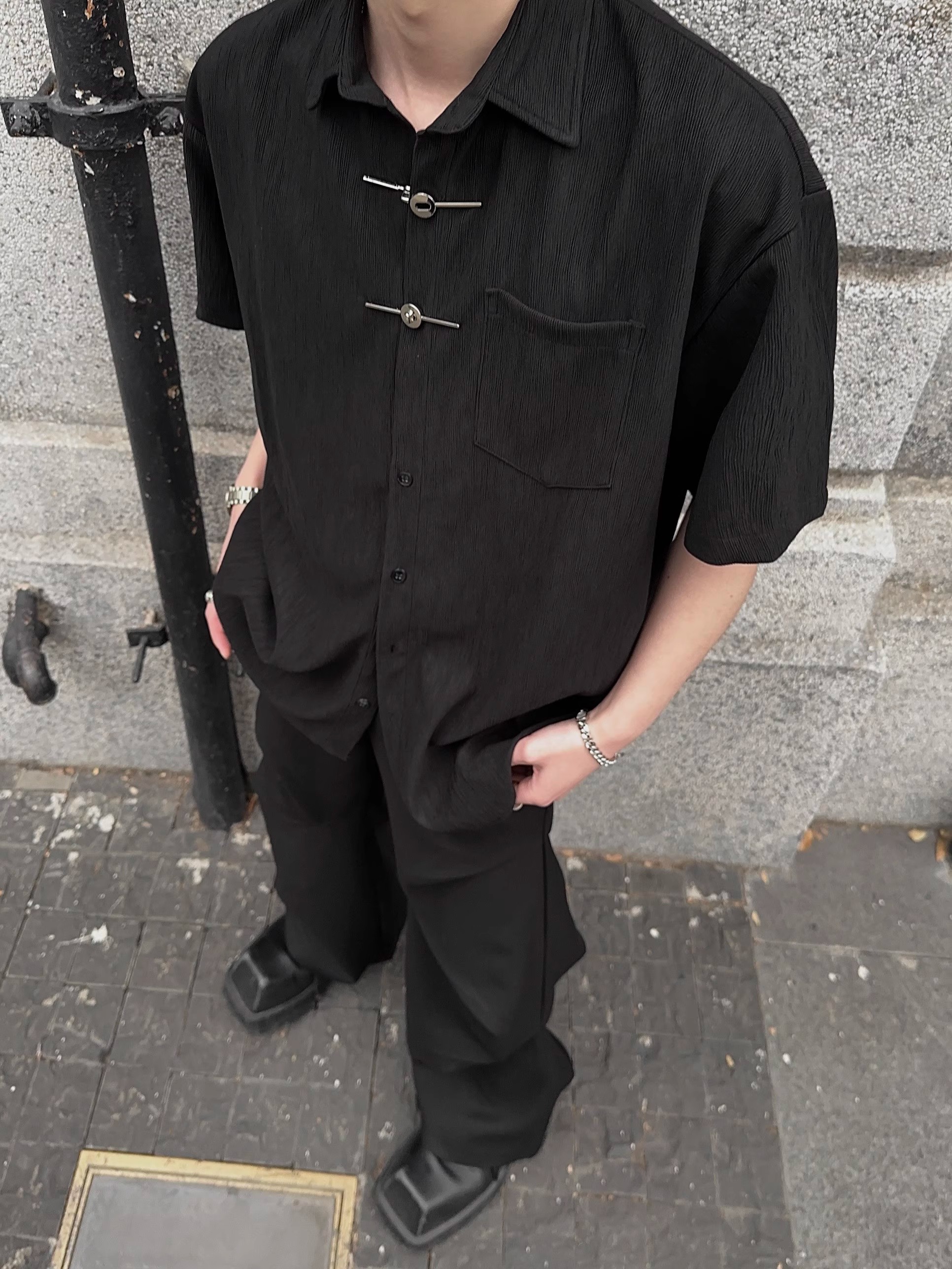 襯衫 新中式 飾短袖 男夏季 金屬裝 高級(jí)感潮流復(fù)古小眾設(shè)計(jì)感襯衣T恤