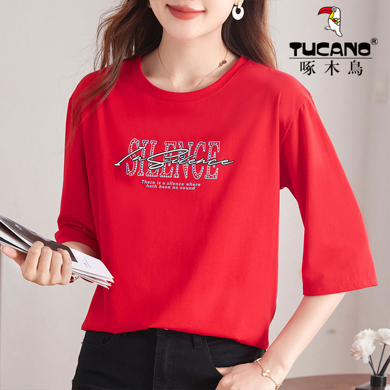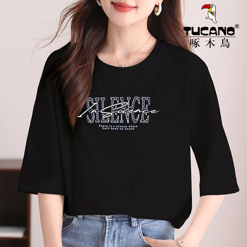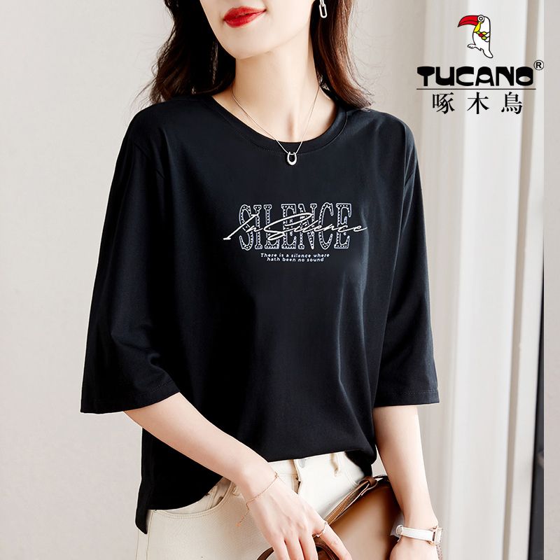 夏季 中袖 啄木鳥純棉七分袖 上衣t恤女2024年新款 圓領(lǐng)寬松白色體恤抖音小紅書同款網(wǎng)紅熱銷 - T恤 - 淘寶網(wǎng)