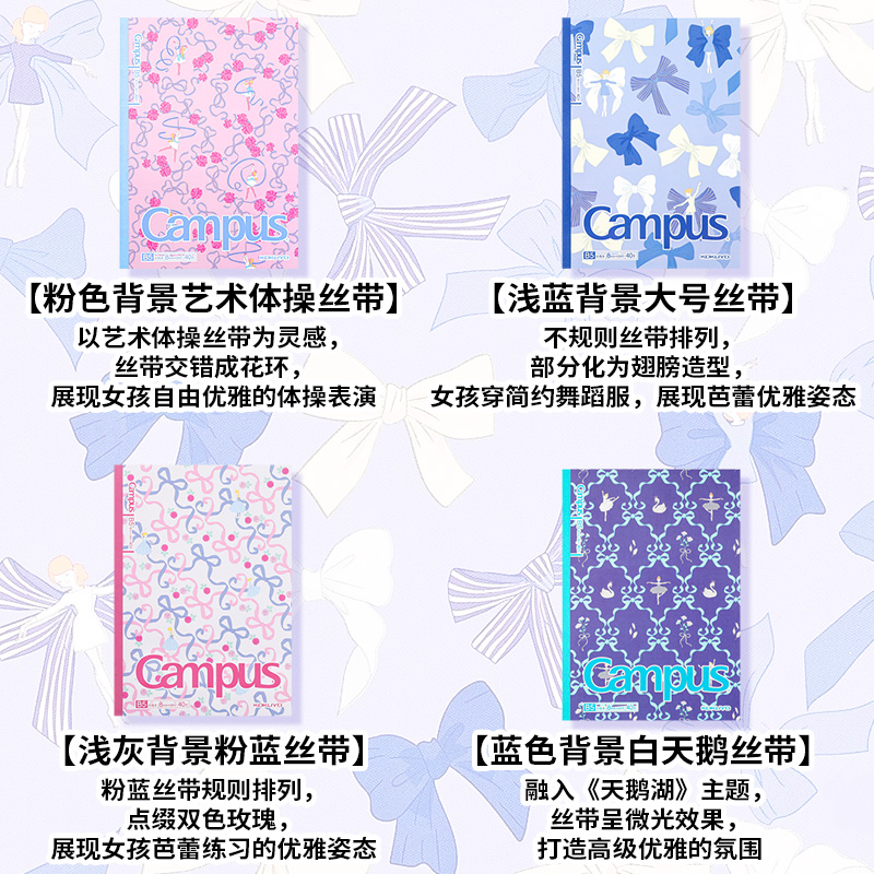 為您提供商品Campus筆記本B5無線膠裝 日本KOKUYO國譽(yù)加藤木系列芭蕾蝴蝶結(jié)新款 本不易洇墨學(xué)生用記事本高顏值本子的詳細(xì)介紹,