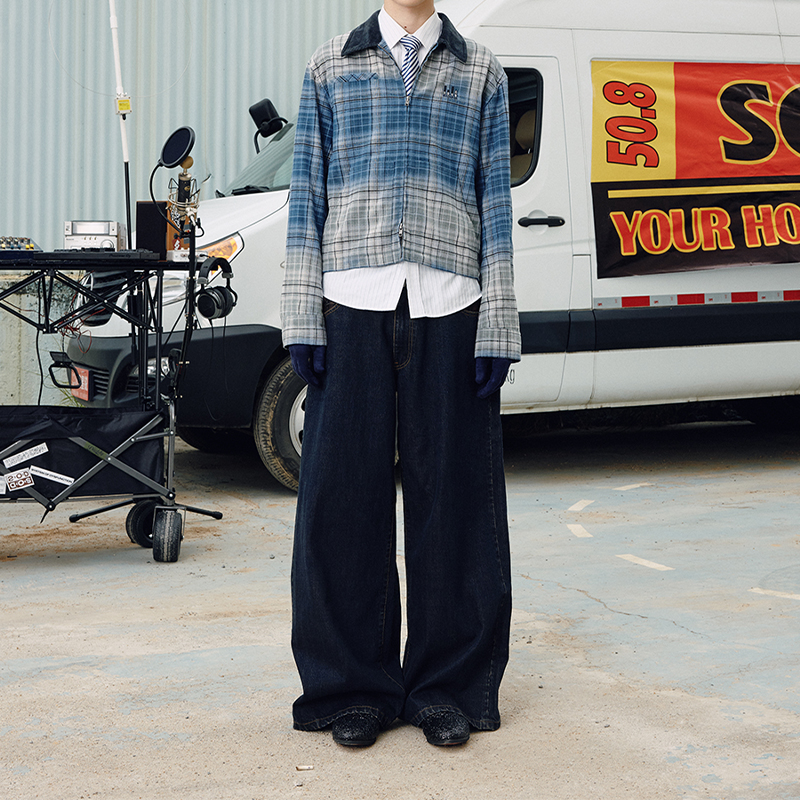 本升級(jí) 闊腿原牛2.0 SOD 版 寬松直筒格紋拼接長褲 Co. 赤耳牛仔褲