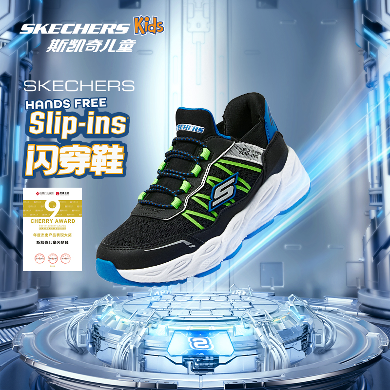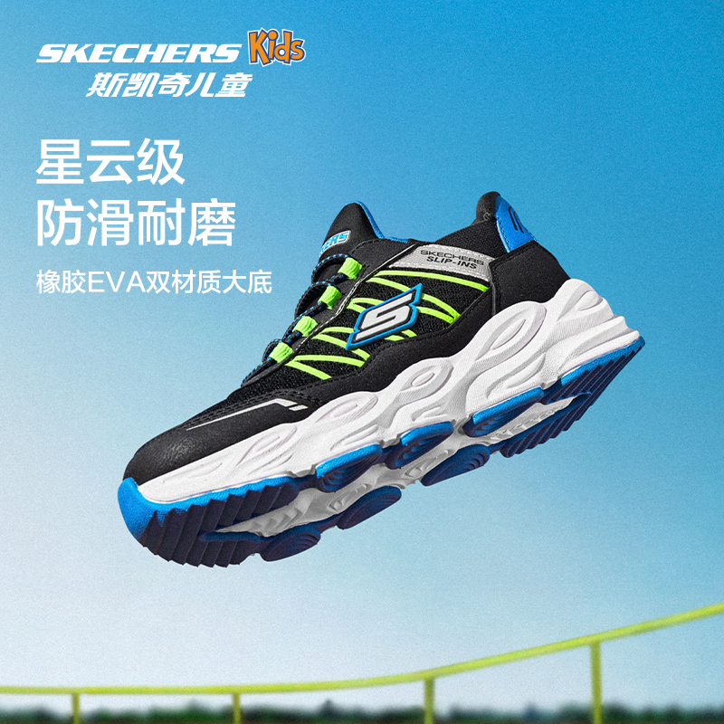 減震舒適運(yùn)動(dòng)鞋 Skechers斯凱奇火箭閃穿鞋 男童一腳蹬童鞋 休閑鞋