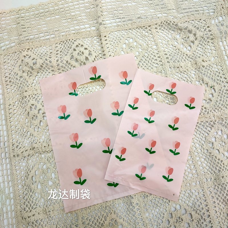 新品 袋 發(fā)夾耳環(huán)發(fā)箍頭繩塑料手提印花包裝 郁金香小飾品禮品袋韓版