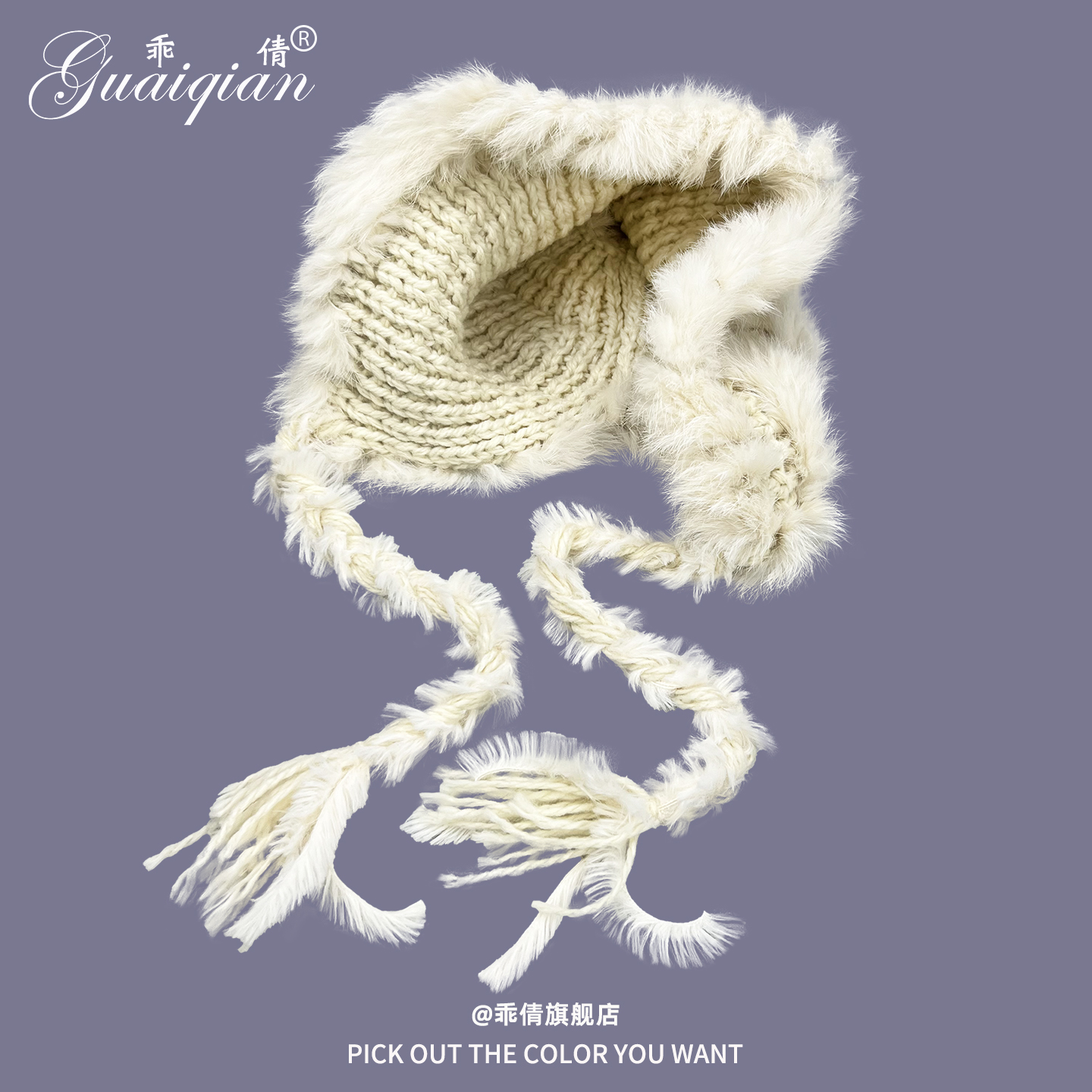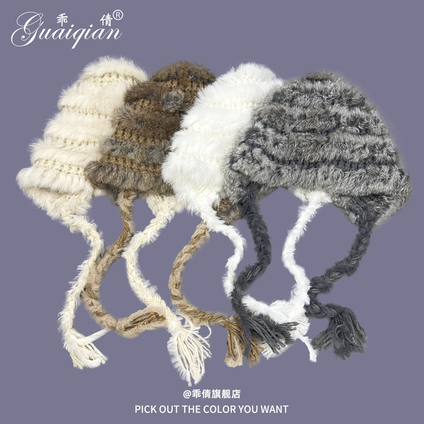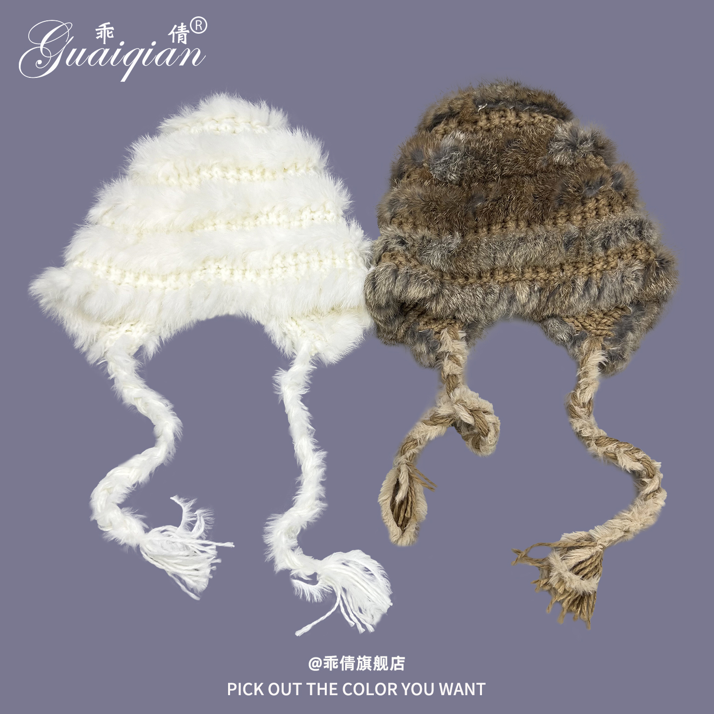 兔毛毛絨帽子秋冬季 保暖護耳皮草帽女防寒包頭針織毛線帽辮子防風抖音小紅書同款網(wǎng)紅熱銷 - 帽子 - 淘寶網(wǎng)
