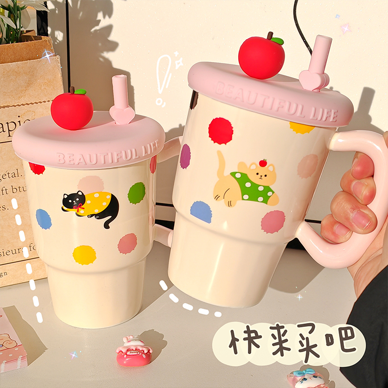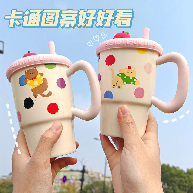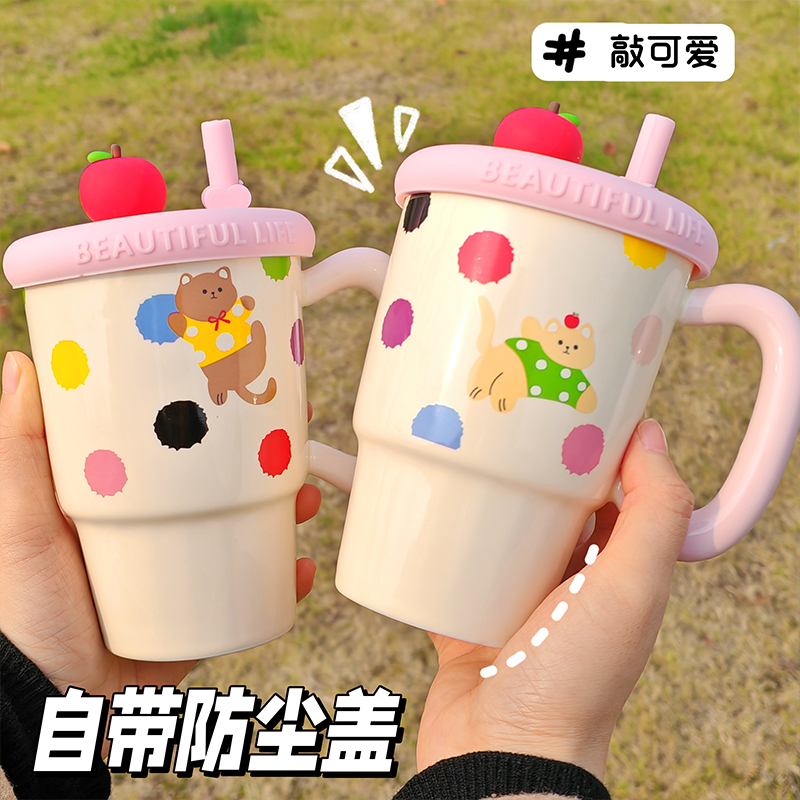 高顏值陶瓷杯女生大容量馬克杯帶蓋帶吸管水杯辦公室咖啡杯吸管杯抖音小紅書同款網(wǎng)紅熱銷 - 馬克杯 - 淘寶網(wǎng)