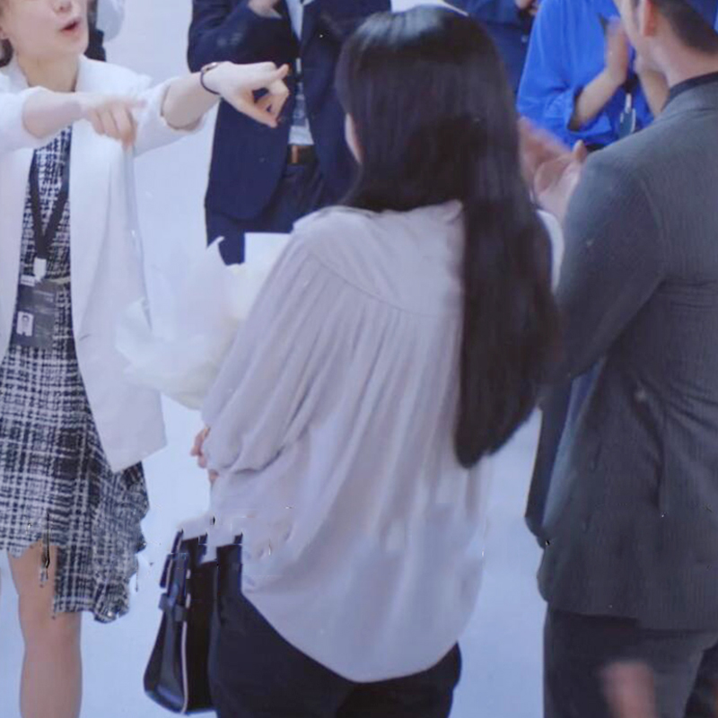 女高級毛毛亮片短款 Thas9i九億 緞面蕩領(lǐng)上衣系帶修身 襯衫 半身裙
