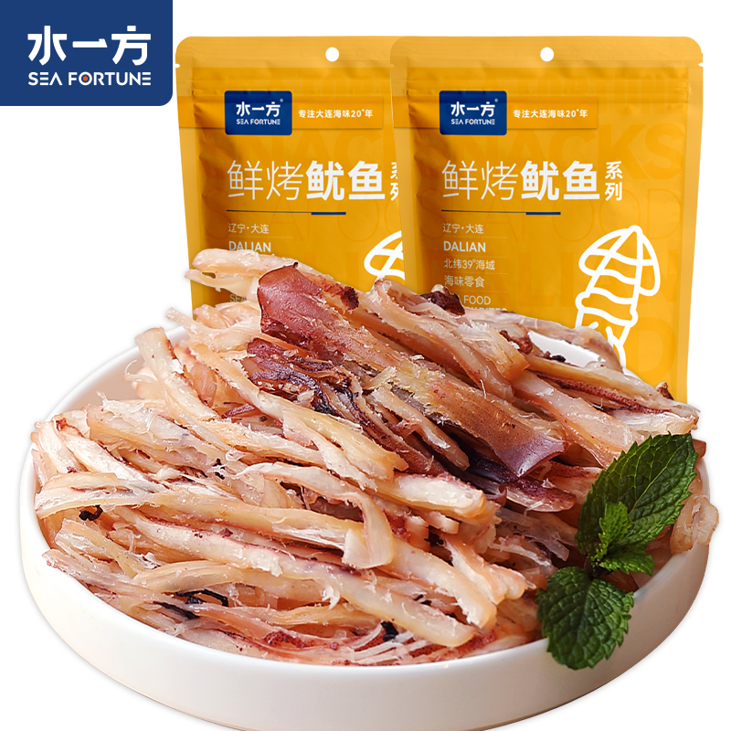 水一方現(xiàn)烤魷魚(yú)絲大連特產(chǎn)手撕碳烤即食香辣魷魚(yú)小吃休閑海味零食