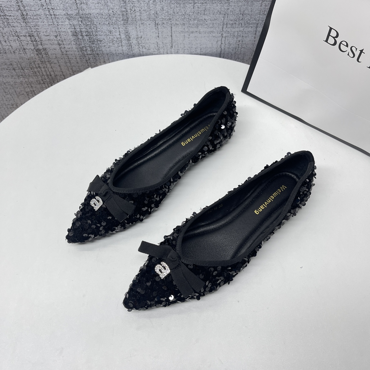 為您提供商品配裙子法式 單鞋 尖頭淺口亮片一腳蹬軟底平底鞋 銀色鞋 女2025新款 子的詳細(xì)介紹,