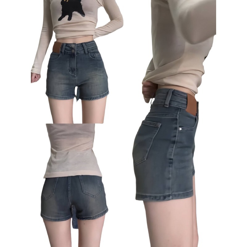 女2025年夏季 修身 美式 顯瘦包臀A字熱褲 ins潮 辣妹高腰牛仔短褲 大碼