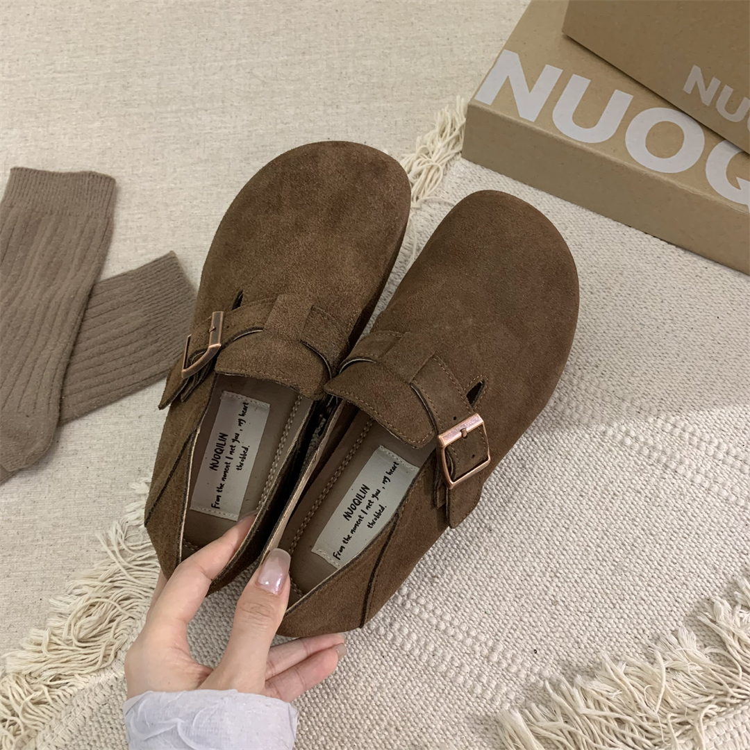 秋冬季 復古丑萌單鞋 女加絨棉鞋 一腳蹬博肯鞋 女2025新款 真皮勃肯鞋