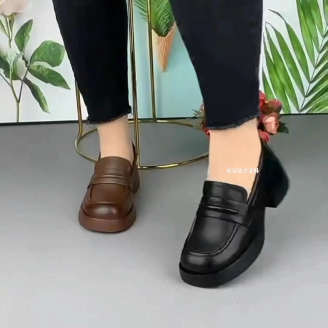 一腳蹬休閑小皮鞋 真皮粗跟中跟女鞋 新款 女2025春秋季 牛皮樂福鞋 子抖音小紅書同款網(wǎng)紅熱銷 - 樂福鞋(豆豆鞋) - 淘寶網(wǎng)