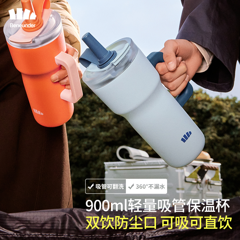 Beneunder吸管保溫杯大容量女生高顏值杯子巨無霸冰霸杯保溫水杯