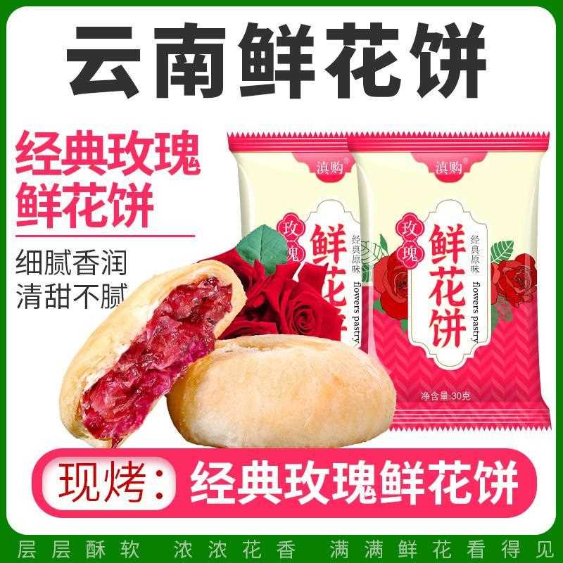 鮮花餅云南瑰特產食玫花餅美品糕點心零食小吃休閑食早餐面包整箱