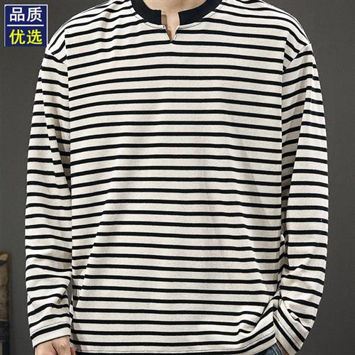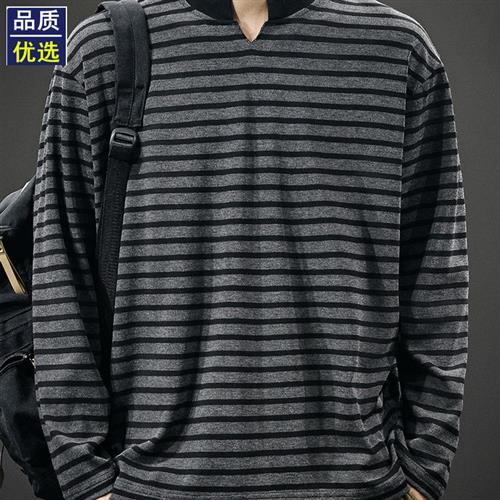 V領(lǐng)衛(wèi)衣美式 潮牌大碼 長(zhǎng)袖 條紋親膚內(nèi)搭打底衫 上衣 t恤男士 2025新款