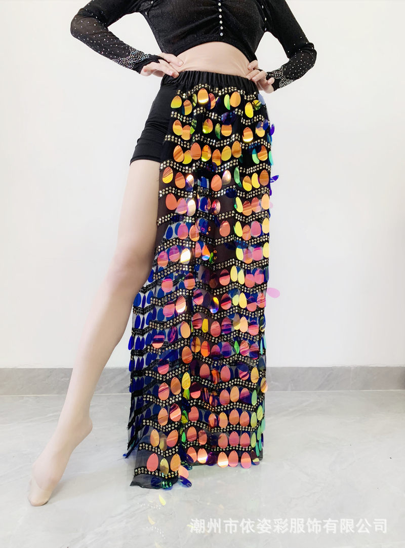 cherrydancer紀(jì)小白原創(chuàng)雙開叉亮片彈力肚皮舞舞裙下裝 練功服2023