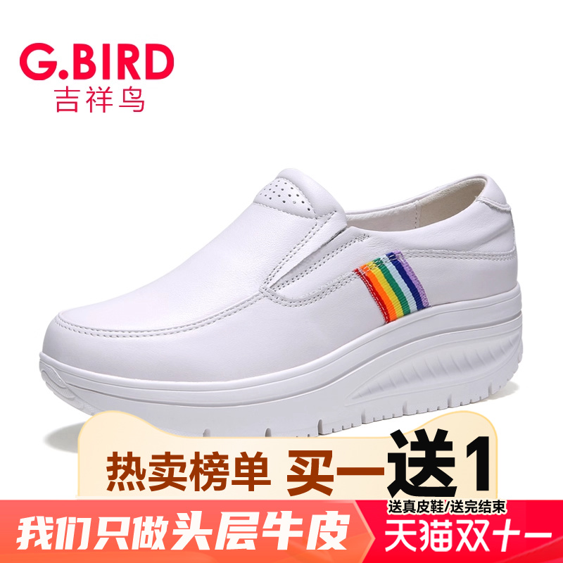 一腳蹬厚底小白鞋 吉祥鳥超輕女鞋 2025新款 真皮休閑百搭搖搖鞋 0701
