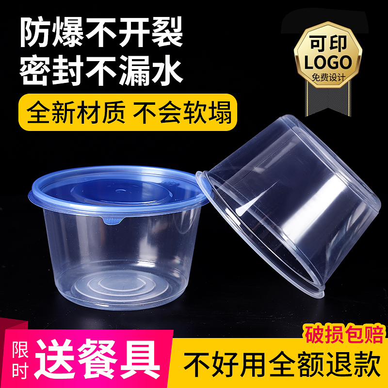 一次性圓碗商用冰粉專用帶蓋食品級塑料家飯碗湯碗飯盒打包300套